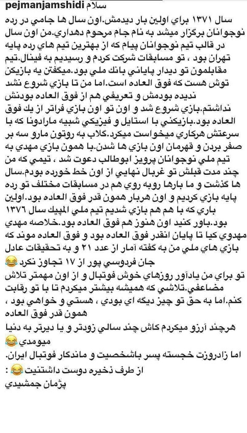 پژمان جمشیدی با انتشار پستی تولد مهدوی کیا را تبریک گفت.بازیکن سابق پرسپولیس و تیم ملی با انتشار پستی بخشی از خاطراتش از اولین دیدار و زمان بازی در کنار مهدی مهدوی کیا را نوشت و البته اشاره جالبی هم به تعداد بازی های ملی اش داشت.او خود را ذخیره مهدوی کیا نامید و تولد او را تبریک گفت.