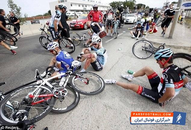 در حاشیه مسابقات دوچرخه سواری توردوفرانس چندین دوچرخه سوار با هم برخورد کرده و دچار حادثه شدند دوچرخه سواران با زحم های سطحی مواجه شدند