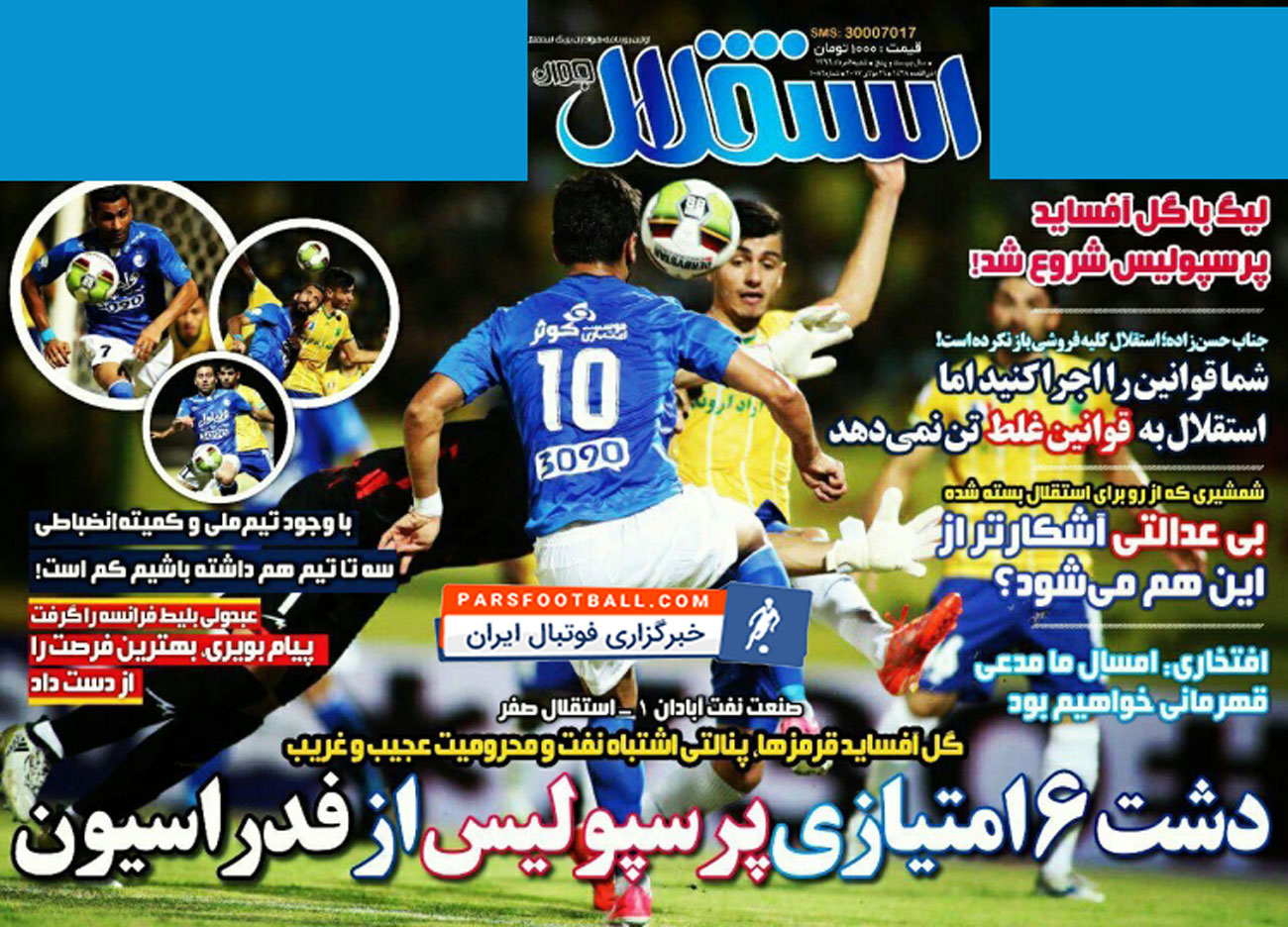 روزنامه استقلال جوان ، شنبه ۷ مرداد ؛ دشت ۶ امتیازی پرسپولیس از فدراسیون !
