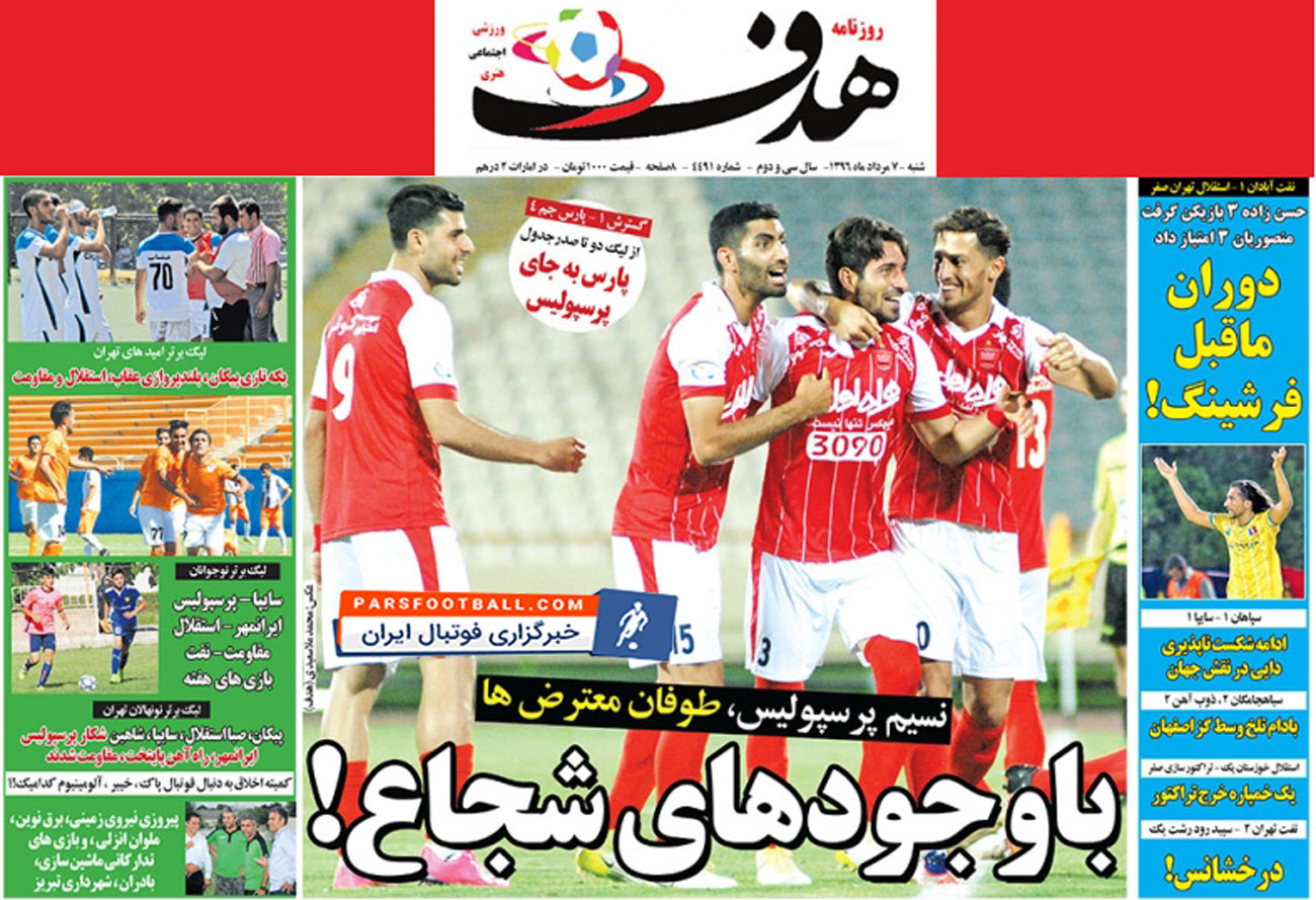 روزنامه هدف ، شنبه ۷ مرداد ؛ با وجود های شجاع !