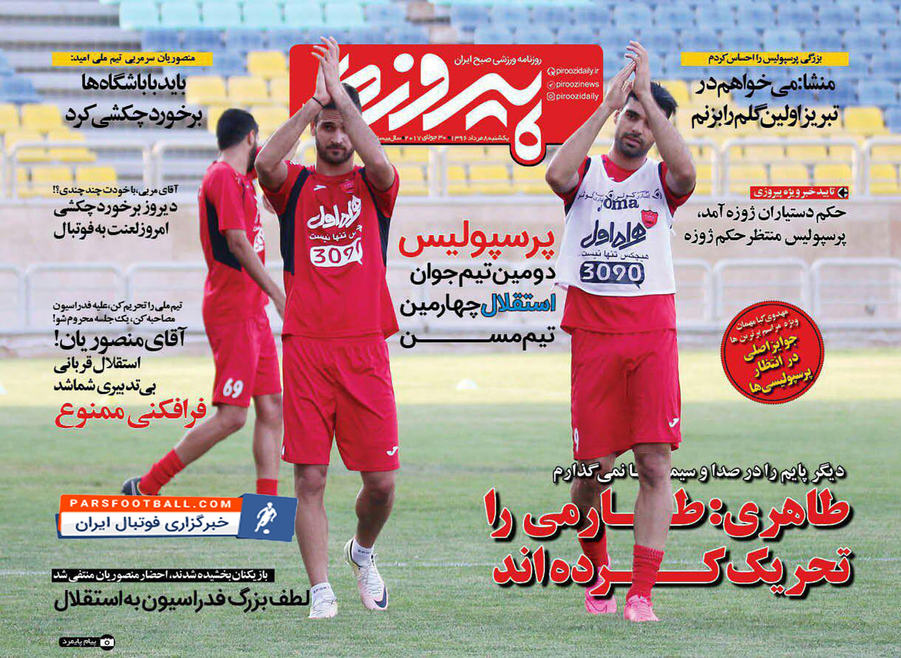 روزنامه پیروزی ، یکشنبه ۸ مرداد ؛ طارمی را تحریک کرده اند !