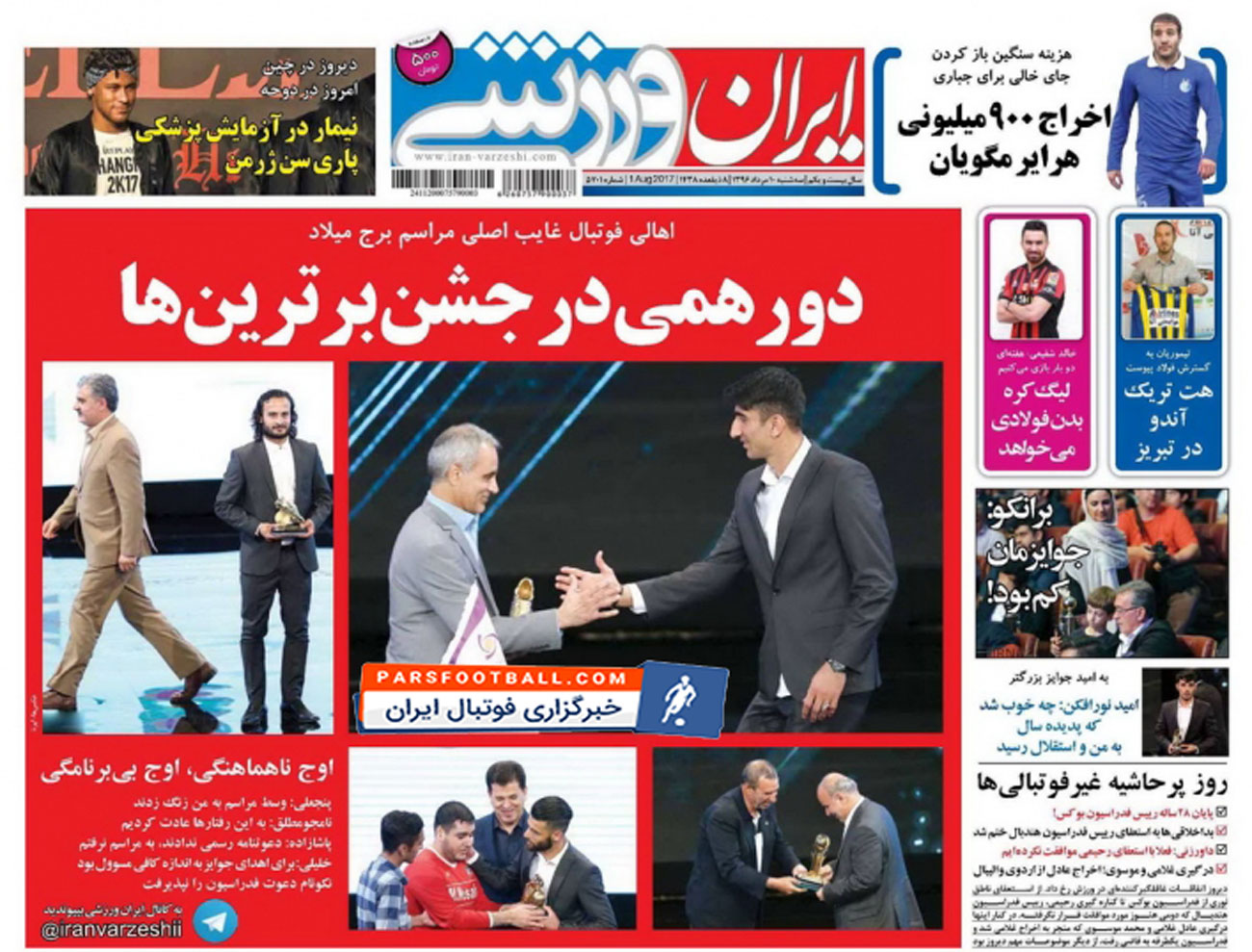 عناوین روزنامه ایران ورزشی در روز سهشنبه ۱۰ مرداد به شرح زیر است :