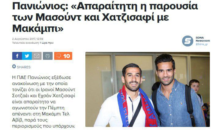بیانیه باشگاه پانیونیوس در خصوص دو بازیکن ایرانی و حضور آنها برابر مکابی به صدر اخبار این کشور تبدیل شده است.
