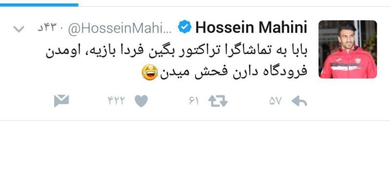 عکس ؛ طعنه ستاره ” پرسپولیس ” به هواداران ” تراکتورسازی ” بابت فحاشی