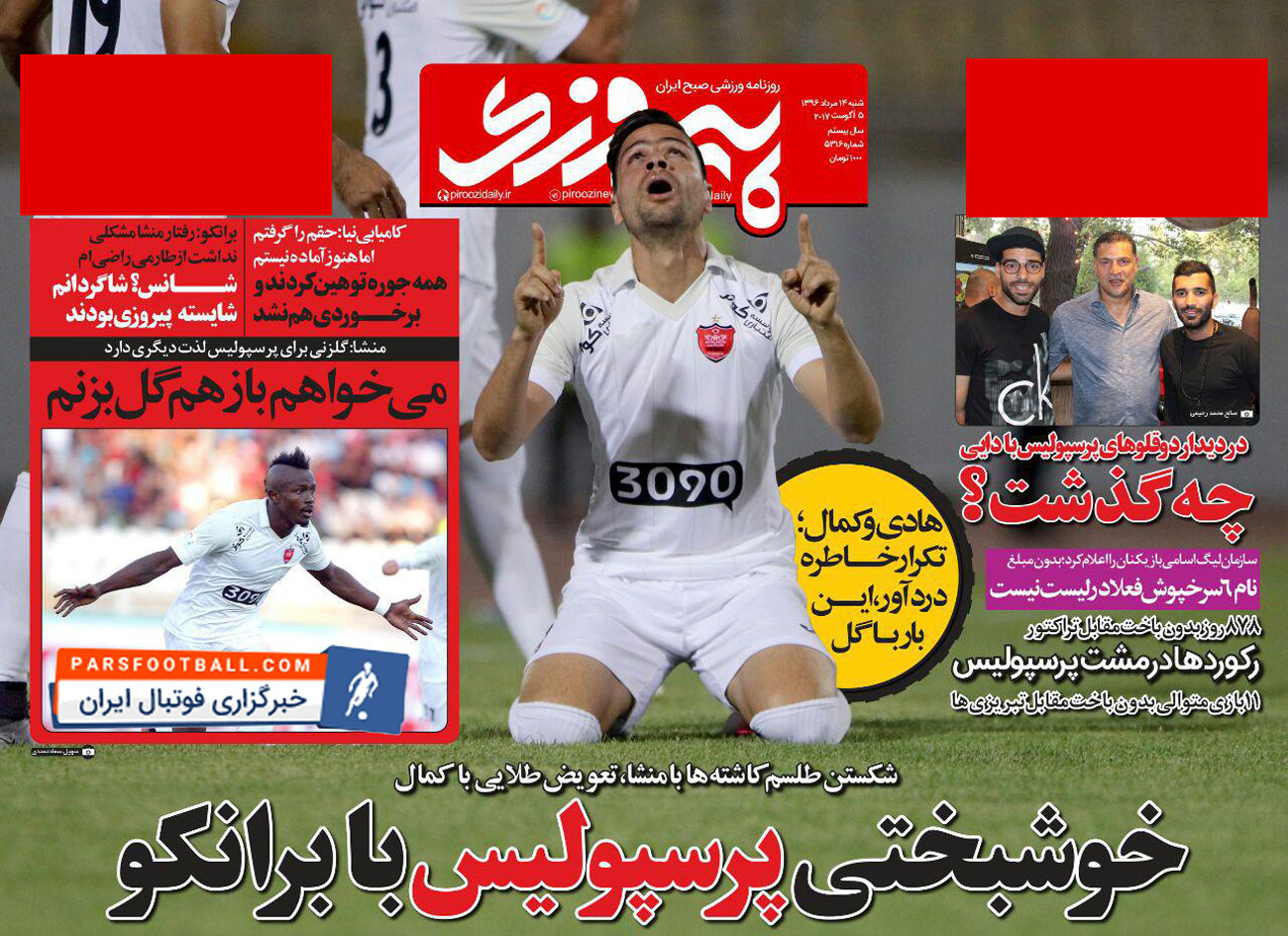 روزنامه پیروزی ، شنبه ۱۴ مرداد ؛ خوشبختی پرسپولیس با برانکو !