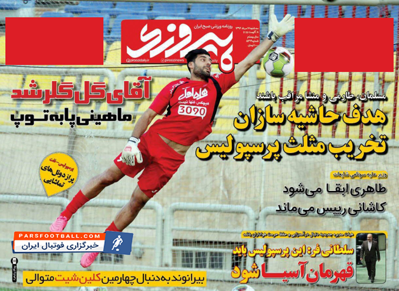 روزنامه پیروزی ، سهشنبه ۱۷ مرداد ؛ آقای گل گلر شد !