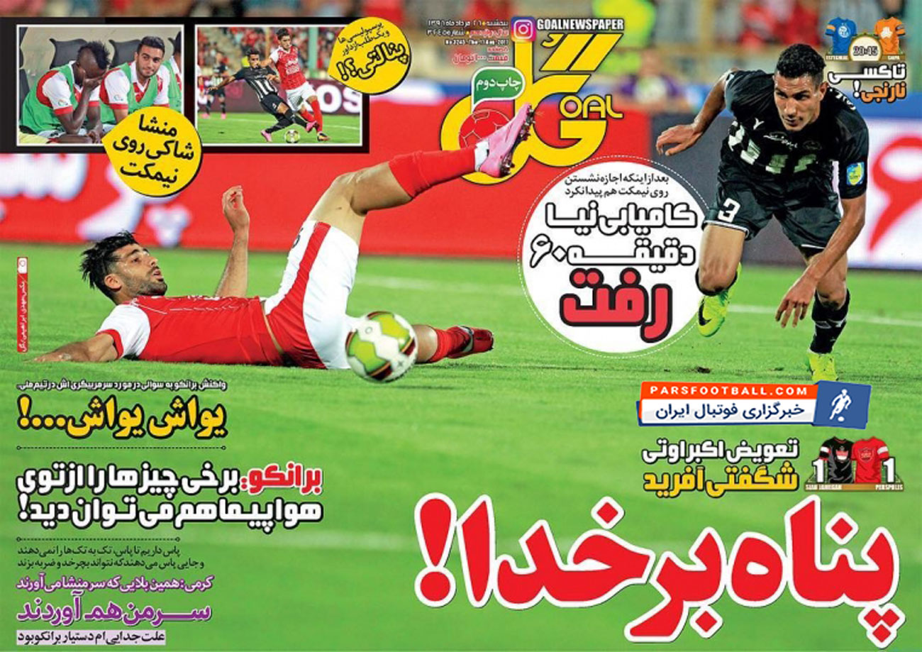 روزنامه گل ، پنجشنبه ۲۶ مرداد ؛ منشا شاکی روی نیمکت !