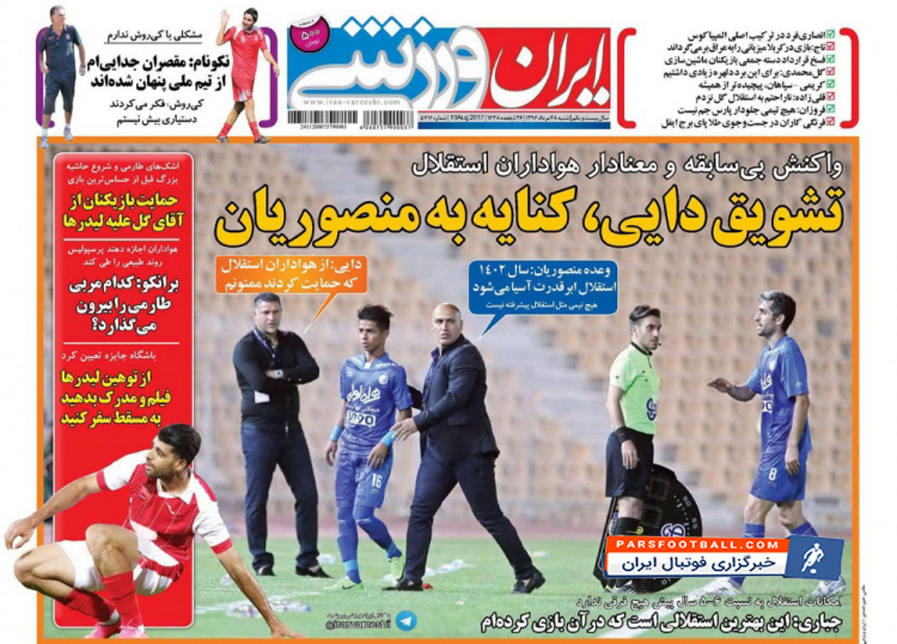 روزنامه ایران ورزشی ، شنبه ۲۸ مرداد ؛ تشویق دایی ، کنایه به منصوریان !