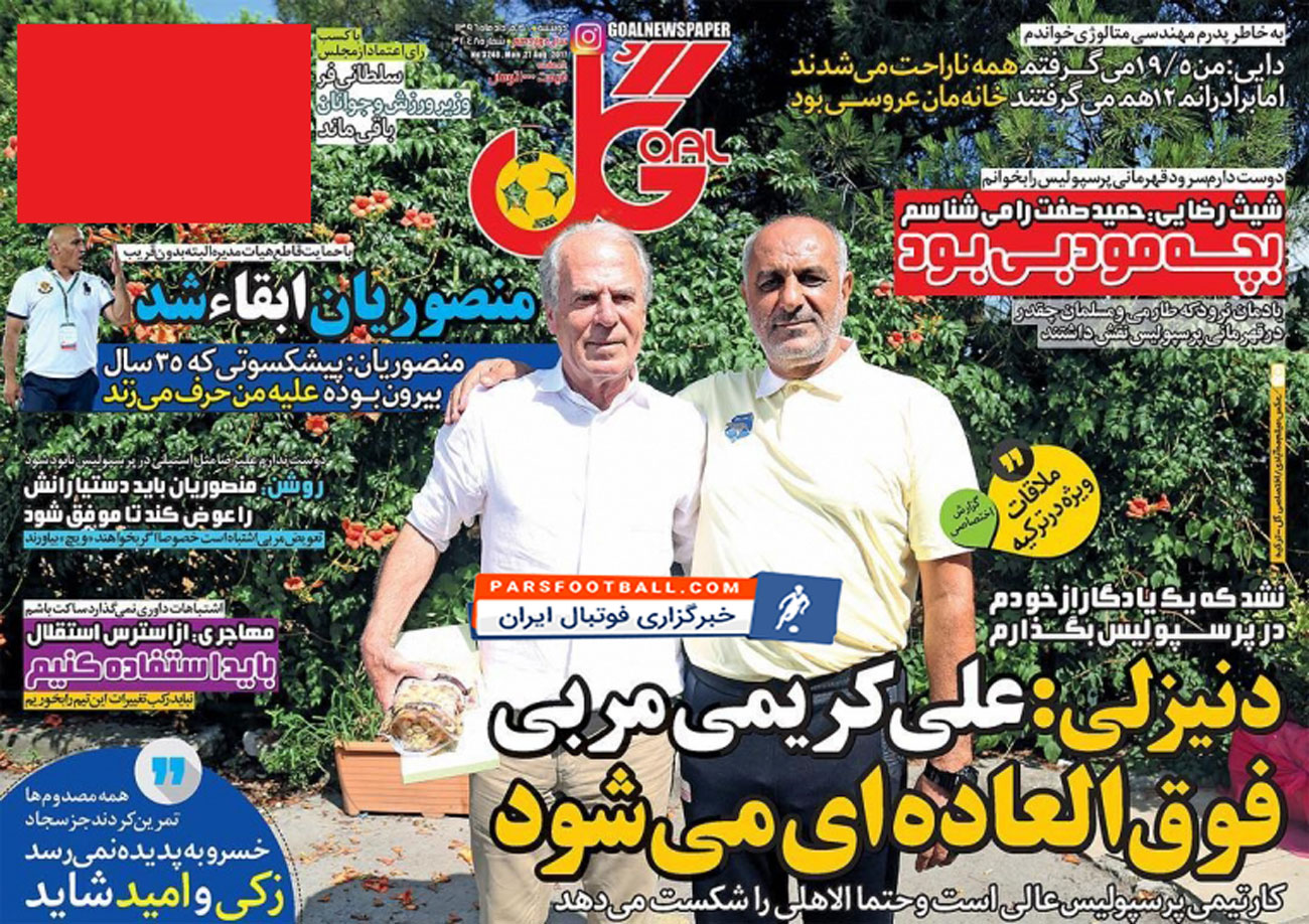 روزنامه گل ، دوشنبه ۳۰ مرداد ؛ منصوریان ابقا شد !
