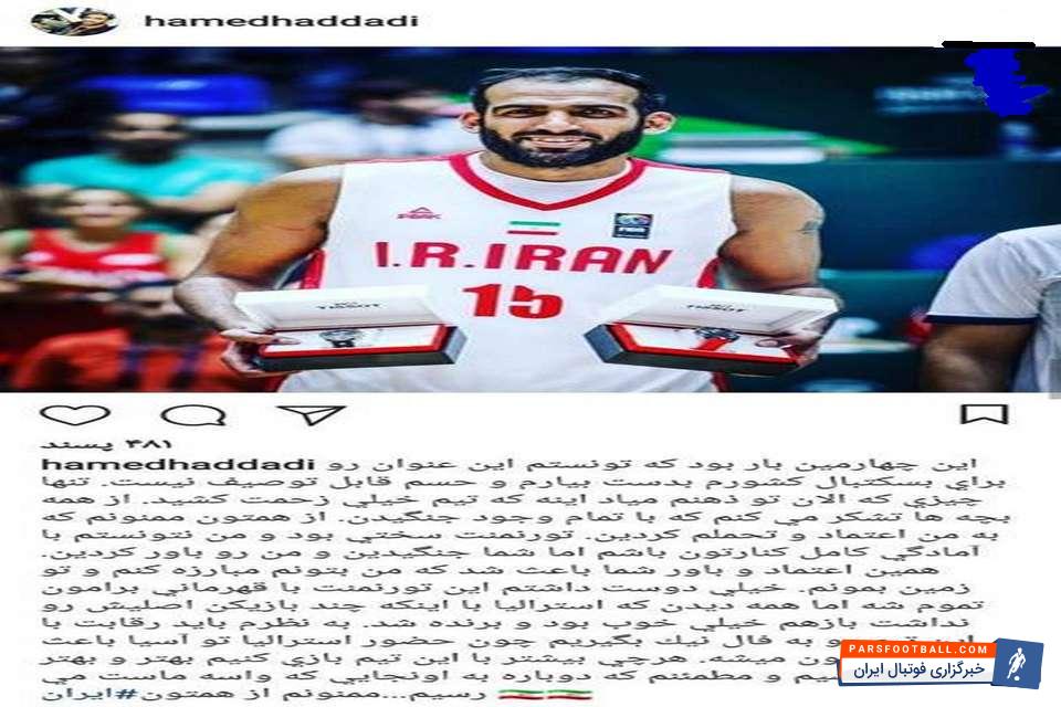 حامد حدادی ملی پوش بسکتبال کشورمان بعد از کسب عنوان ارزشمندترین بازیکن کاپ آسیا این پست را در صفحه اینستاگرامش قرار داد.