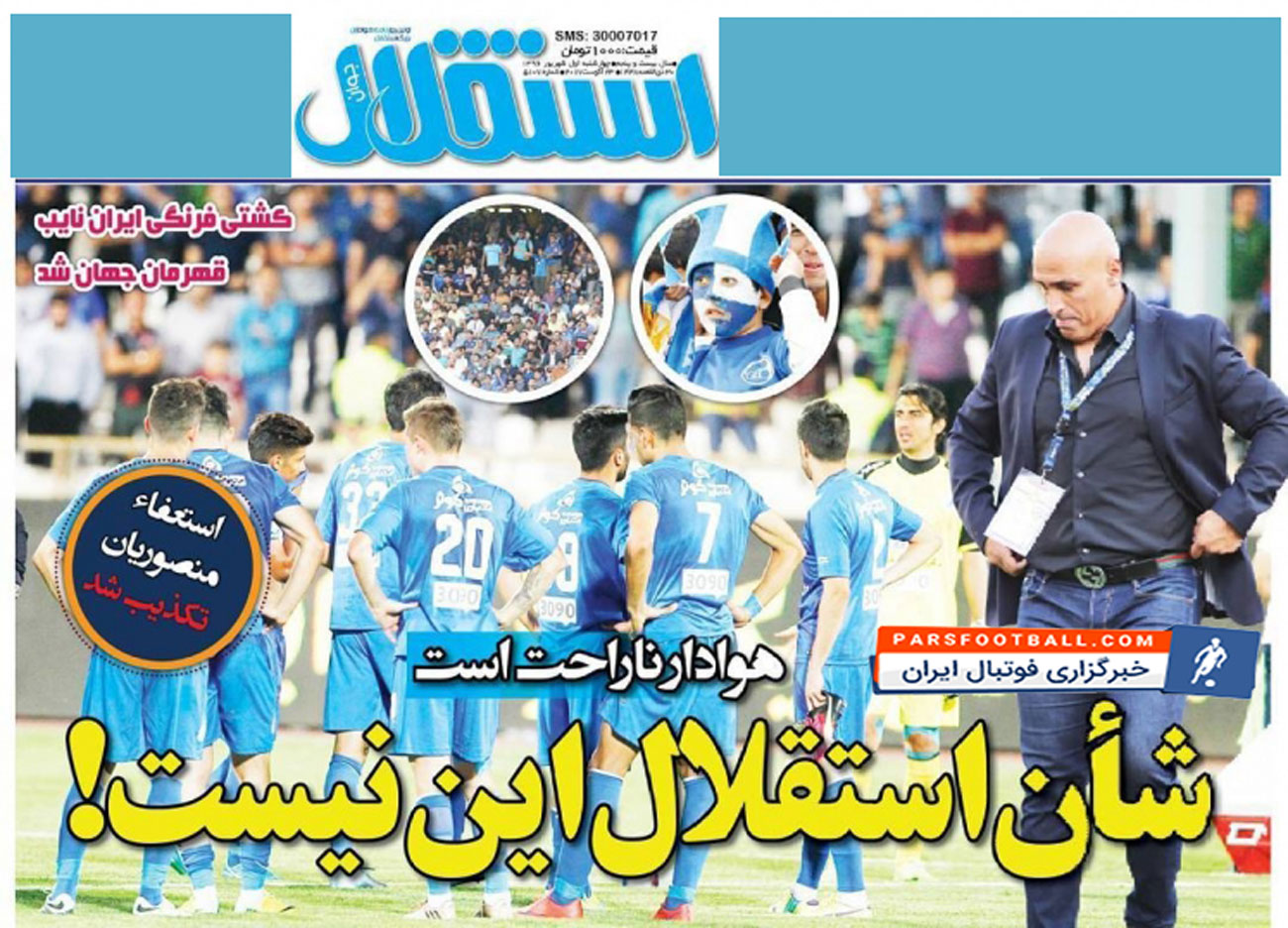 روزنامه استقلال جوان ، چهارشنبه ۱ شهریور ؛ هوادار ناراحت است !