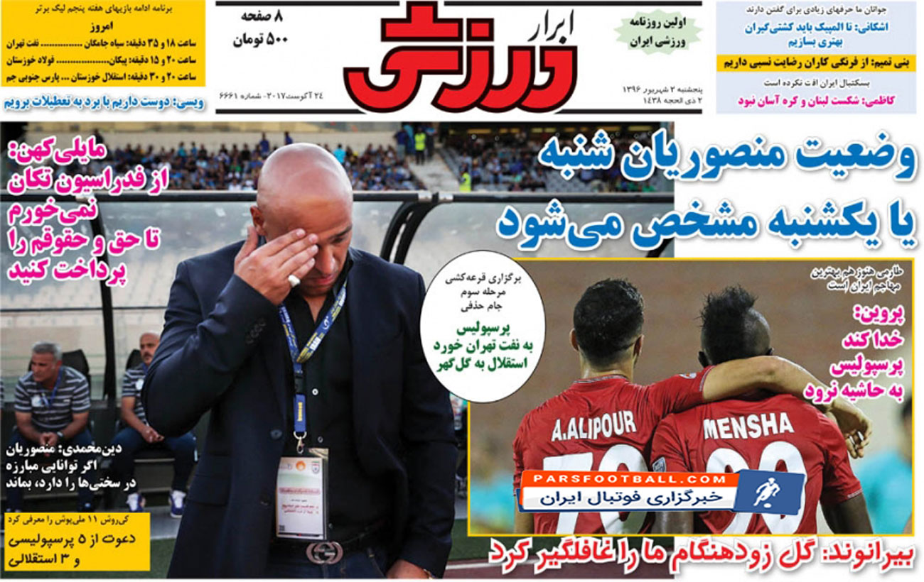 روزنامه ابرار ورزشی ، پنجشنبه ۲ شهریور ؛ خدا کند پرسپولیس به حاشیه نرود !