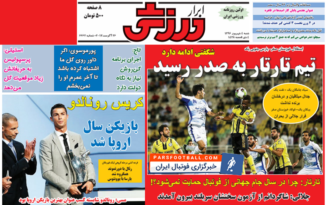 گیشه اخبار داخلی پارس فوتبال همه روزه به بررسی نشریات ورزشی می پردازد. به بررسی روزنامه ابرار ورزشی می پردازیم.