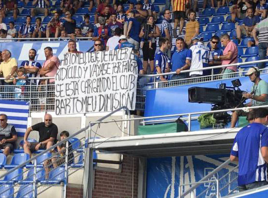 « بارتومئو، مسخره بازی را تمام کن و لطفا از بارسلونا برو. باشگاه در حال سقوط است. بارتومئو؛ استعفا.»