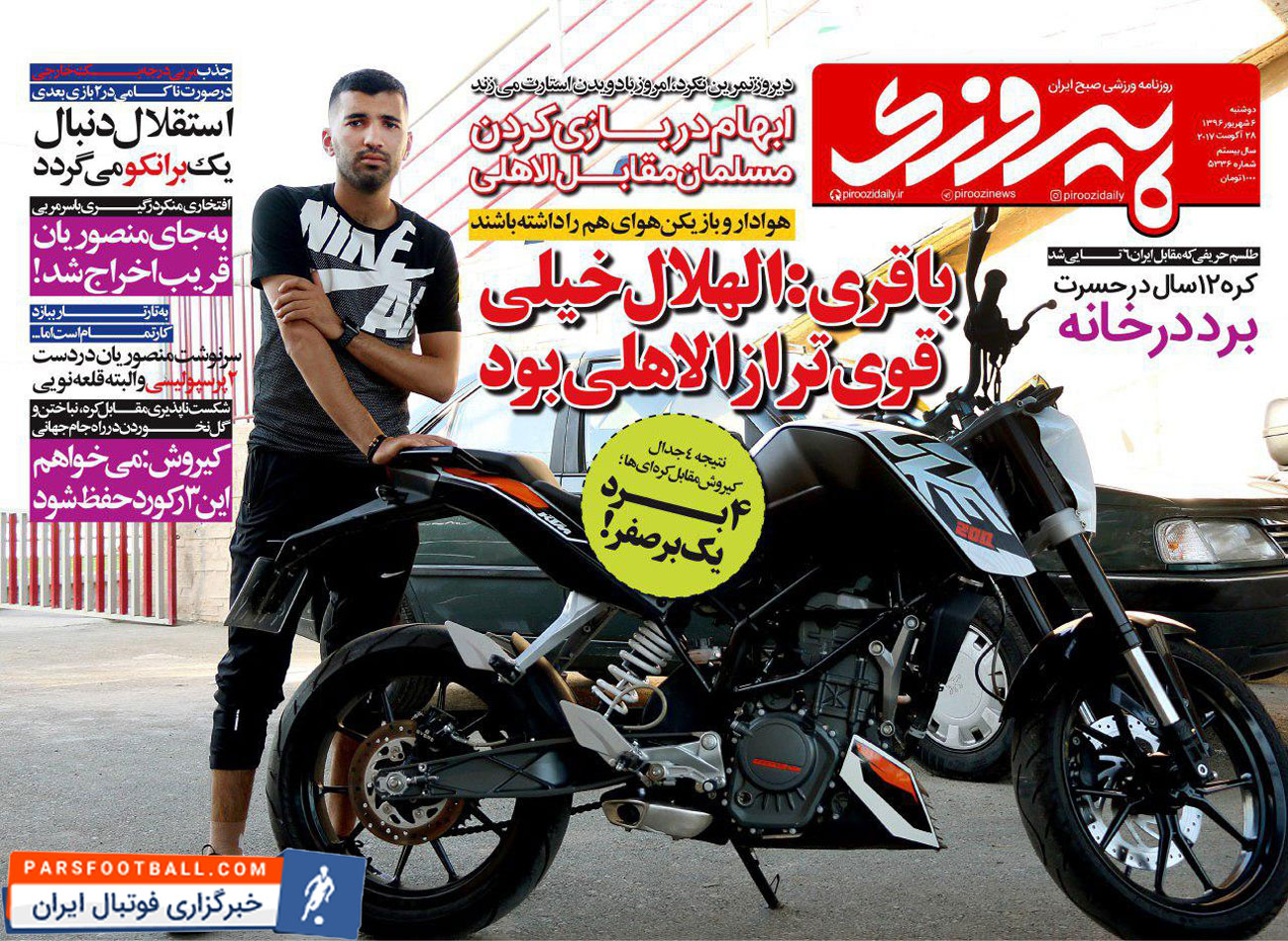 روزنامه پیروزی ، دوشنبه ۶ شهریور ؛ استقلال دنبال یک برانکو !