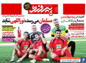 روزنامه پیروزی ، چهارشنبه ۸ شهریور ؛ امید در پرسپولیس ، جنجال در الاهلی !