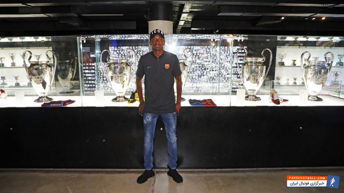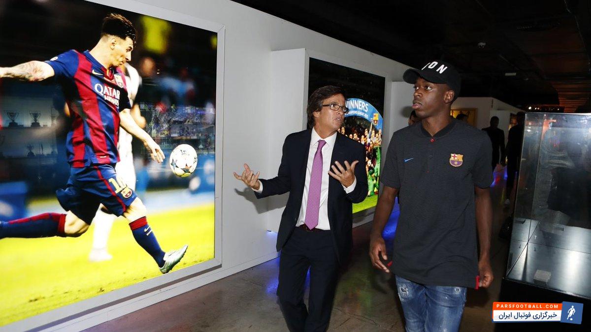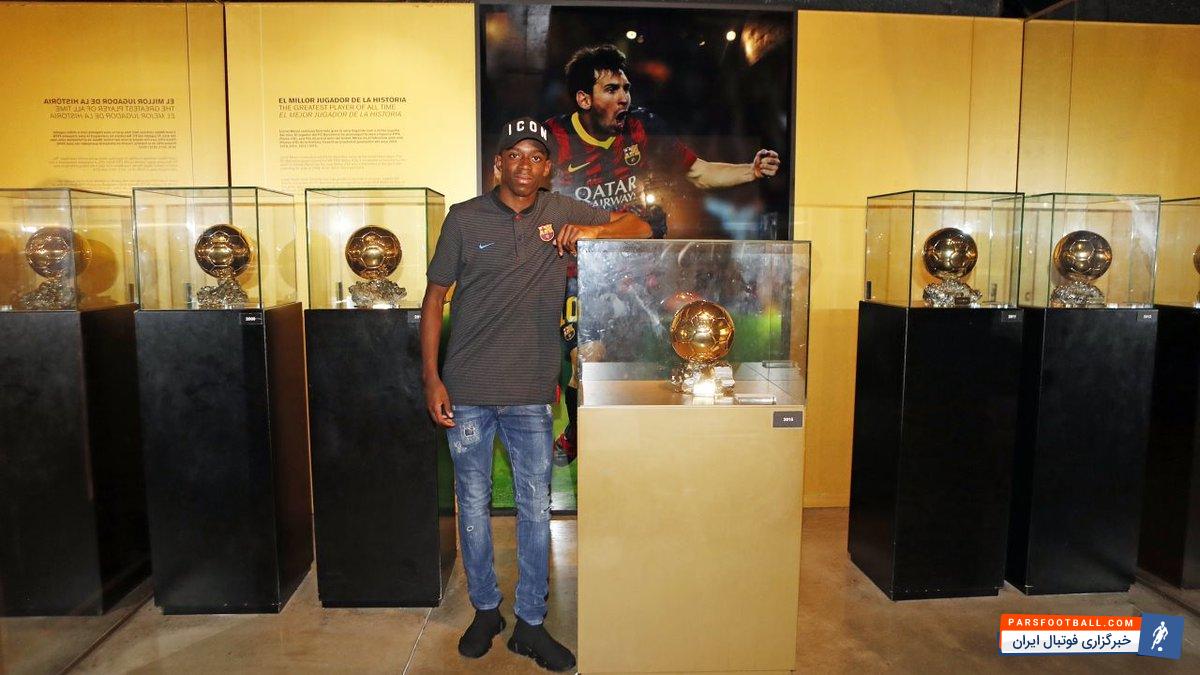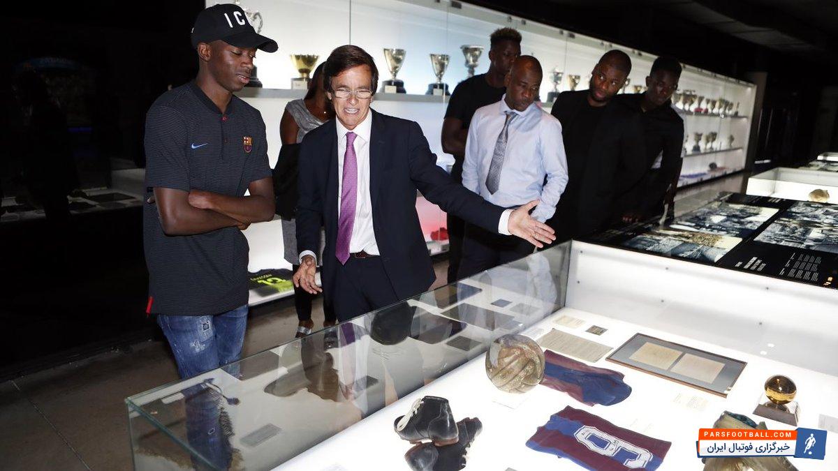 عثمان دمبله، خرید جدید و گران قیمت فرانسوی بارسلونا که روز گذشته به هواداران این تیم معرفی شد و امروز هم اولین تمرینش را زیر نظر ارنستو والورده پشت سر گذاشت، از موزه افتخارات باشگاه بازدید کرد. تصاویری از این بازدید ملاحظه میکنید: