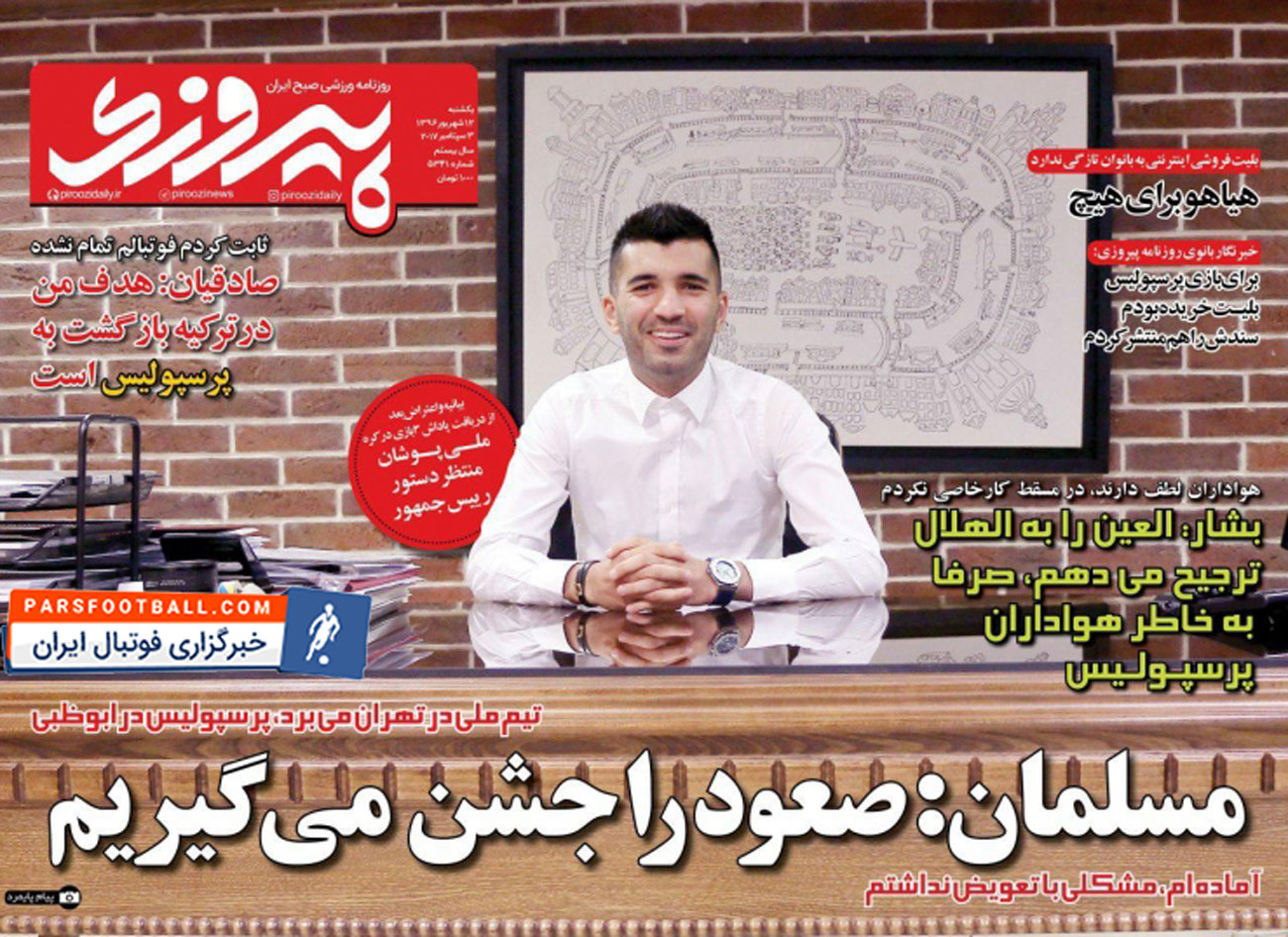 روزنامه پیروزی ، یکشنبه ۱۲ شهریور ؛ صعود را جشن می گیریم !