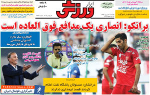 روزنامه ابرار ورزشی ، یکشنبه ۱۲ شهریور ؛ انصاری یک مدافع فوق العاده است !