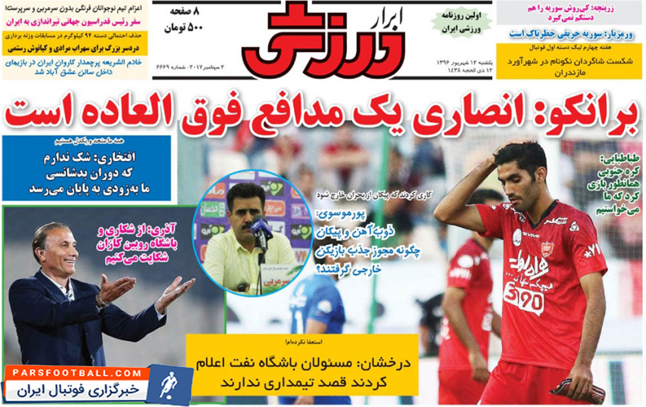 روزنامه ابرار ورزشی ، یکشنبه ۱۲ شهریور ؛ انصاری یک مدافع فوق العاده است !