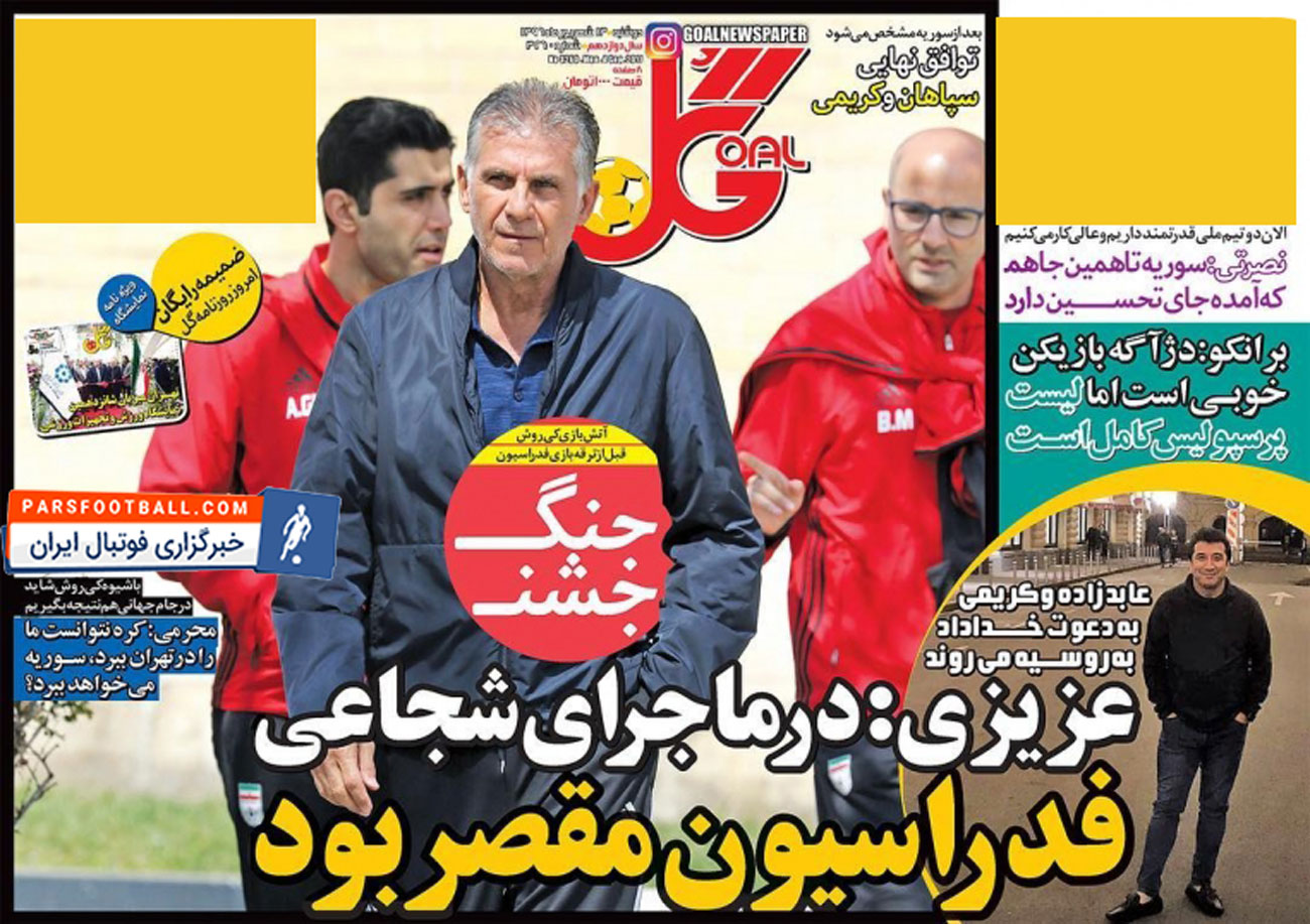 عناوین روزنامه گل در روز دوشنبه ۱۳ شهریور به شرح زیر است :