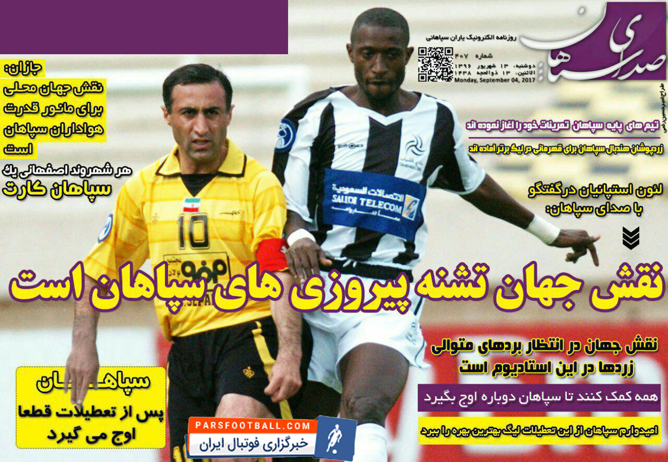 روزنامه صدای سپاهان ، دوشنبه ۱۳ شهریور ؛ نقش جهان تشنه پیروزی سپاهان است !