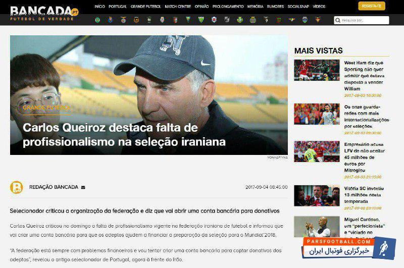 روز گذشته رسانه پرتغالی بانکادا صحبتهای کیروش را پوشش داد و به بررسی مشکلات مالی فوتبال ایران پرداخت.