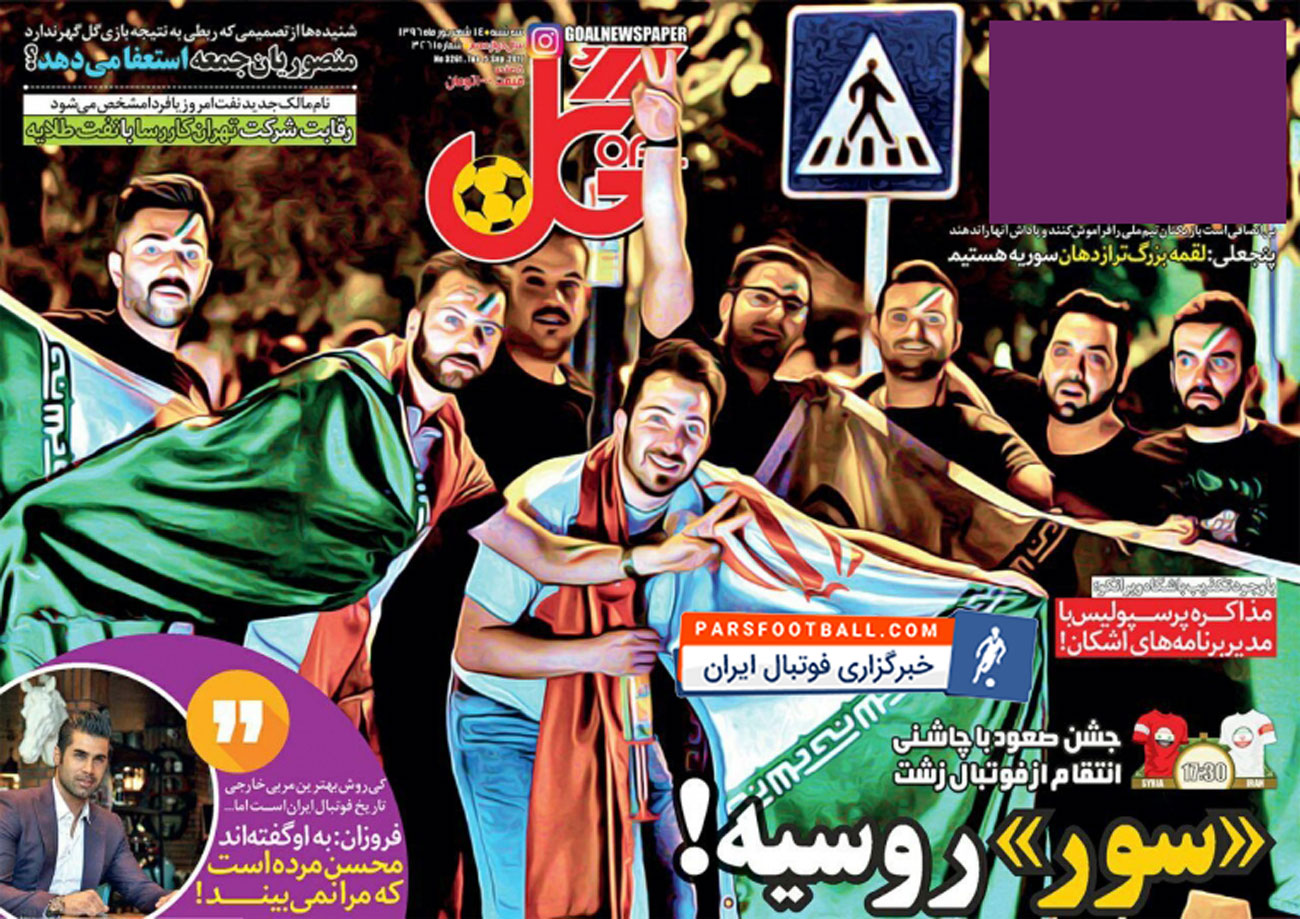 روزنامه گل ، سهشنبه ۱۴ شهریور ؛ سور روسیه !