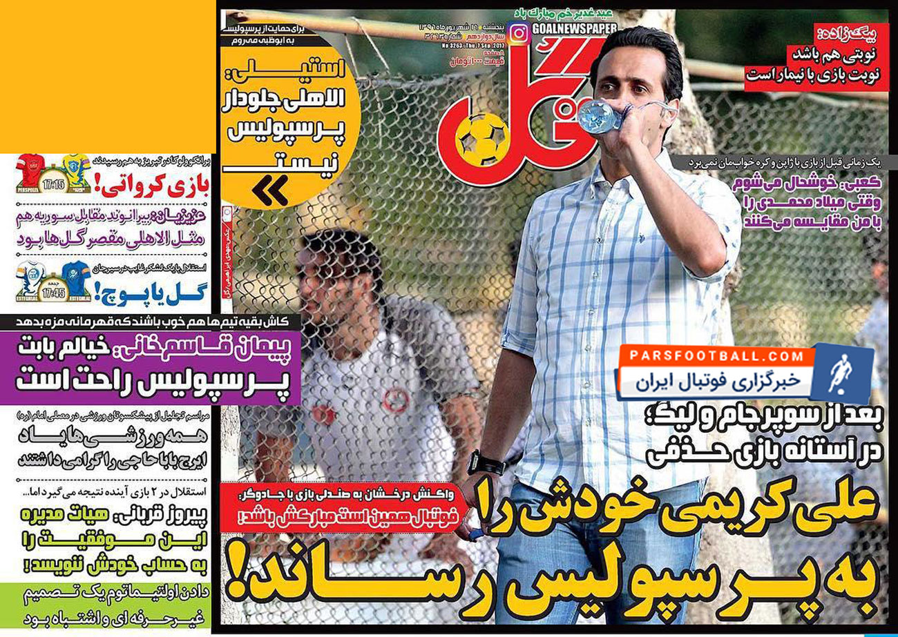 روزنامه گل ، پنجشنبه ۱۶ شهریور ؛ علی کریمی خودش را به پرسپولیس رساند !