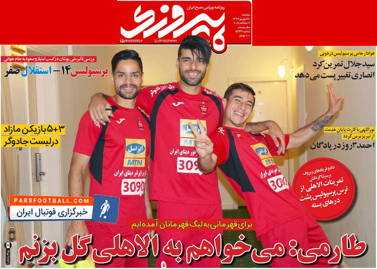 روزنامه پیروزی ، دوشنبه ۲۰ شهریور ؛ می خواهم به الاهلی گل بزنم !