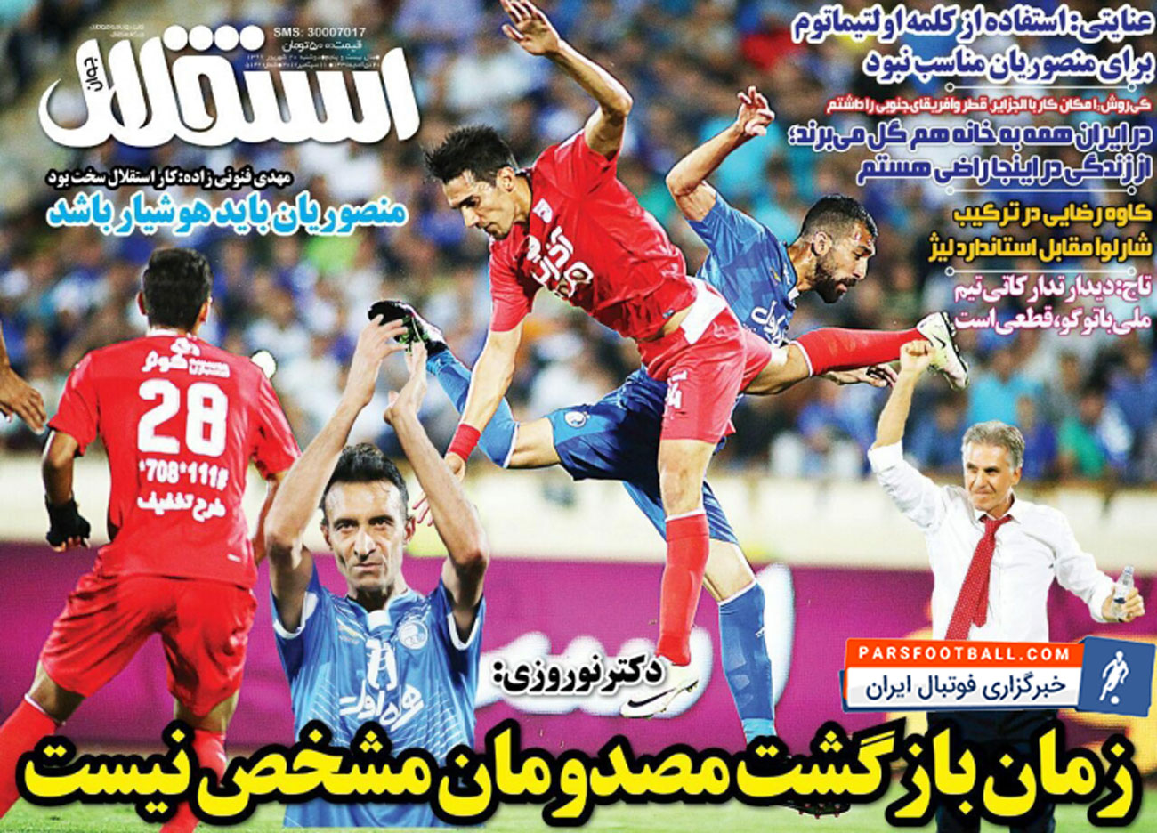 روزنامه استقلال جوان ، دوشنبه ۲۰ شهریور ؛ منصوریان باید هوشیار باشد !