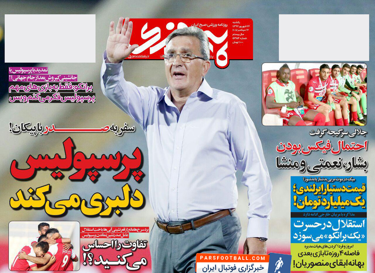 روزنامه پیروزی ، یکشنبه ۲۶ شهریور ؛ پرسپولیس دلبری میکند !