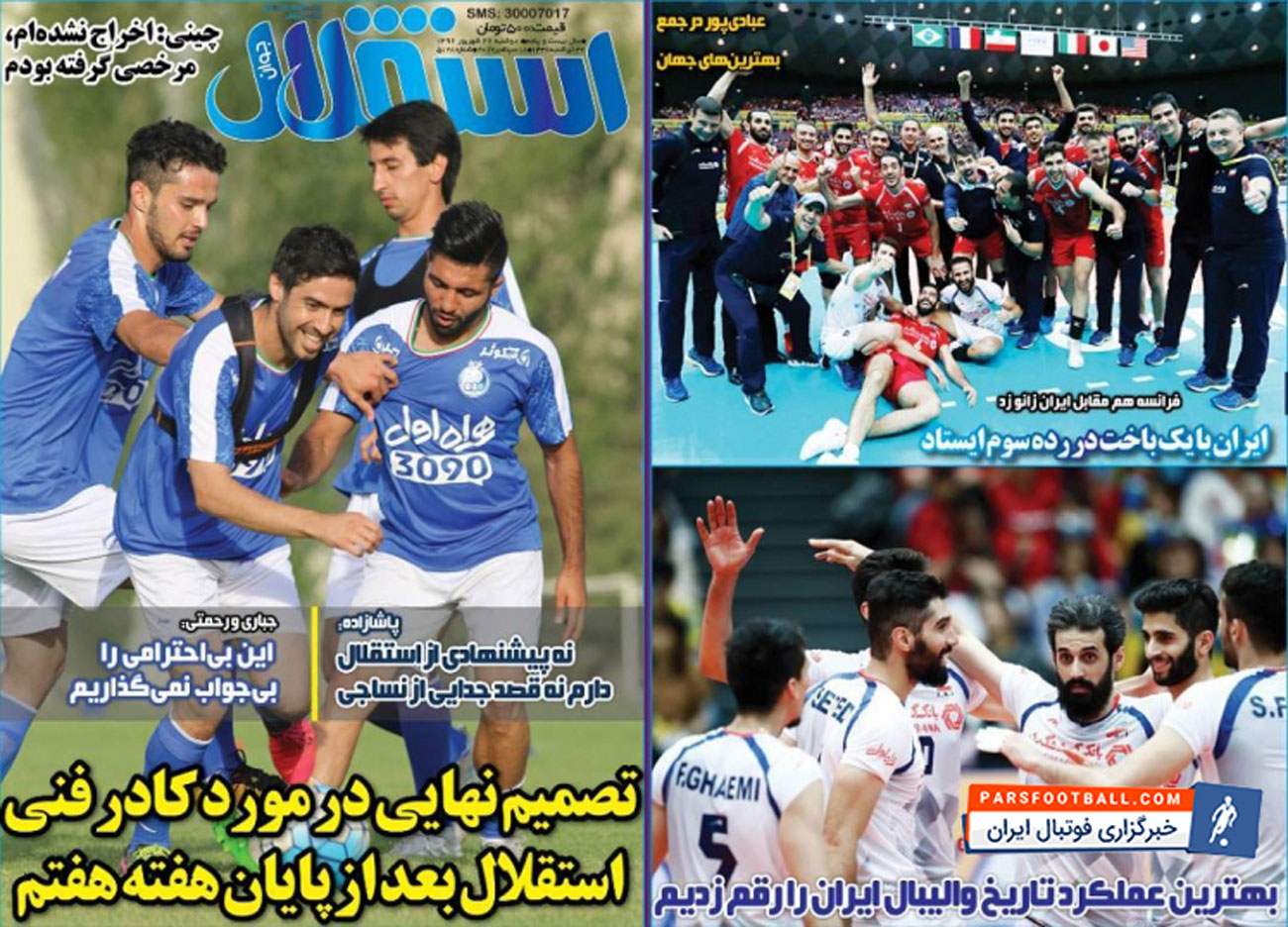 روزنامه استقلال جوان ، دوشنبه ۲۷ شهریور ؛ چینی : اخراج نشدم !