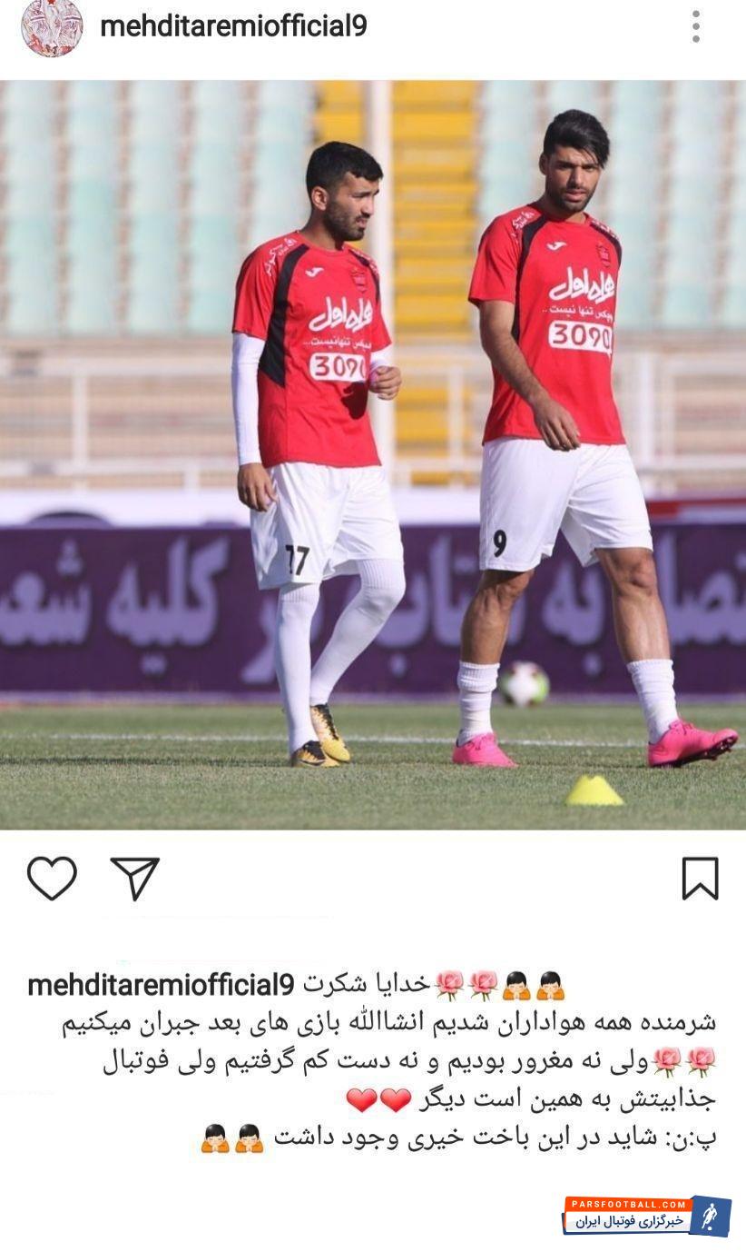 اصلاح متن نیشدار طارمی در اینستاگرام بعد از بازی با پیکان