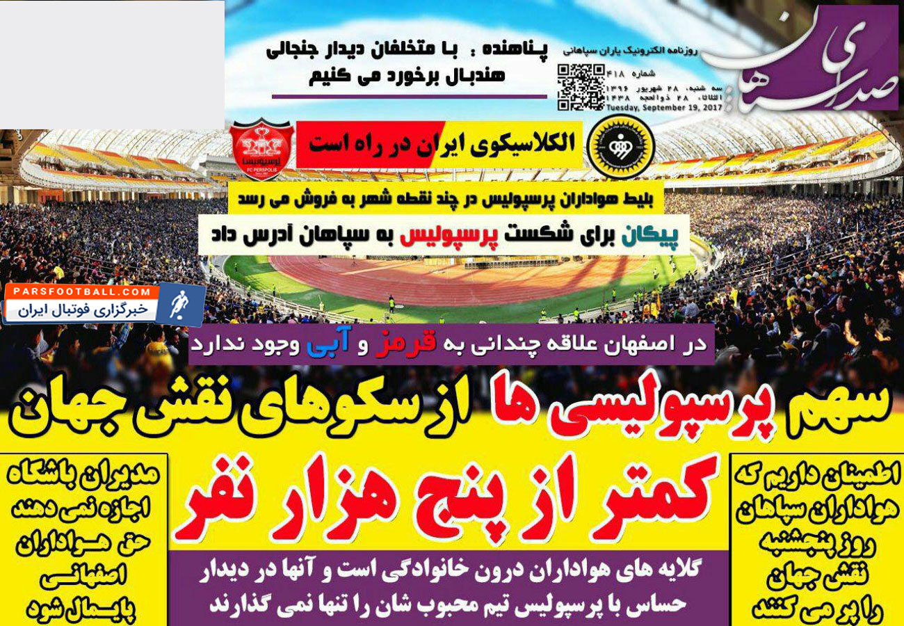 روزنامه صدای سپاهان ، سهشنبه ۲۸ شهریور ؛ الکلاسیکوی ایران در راه است !