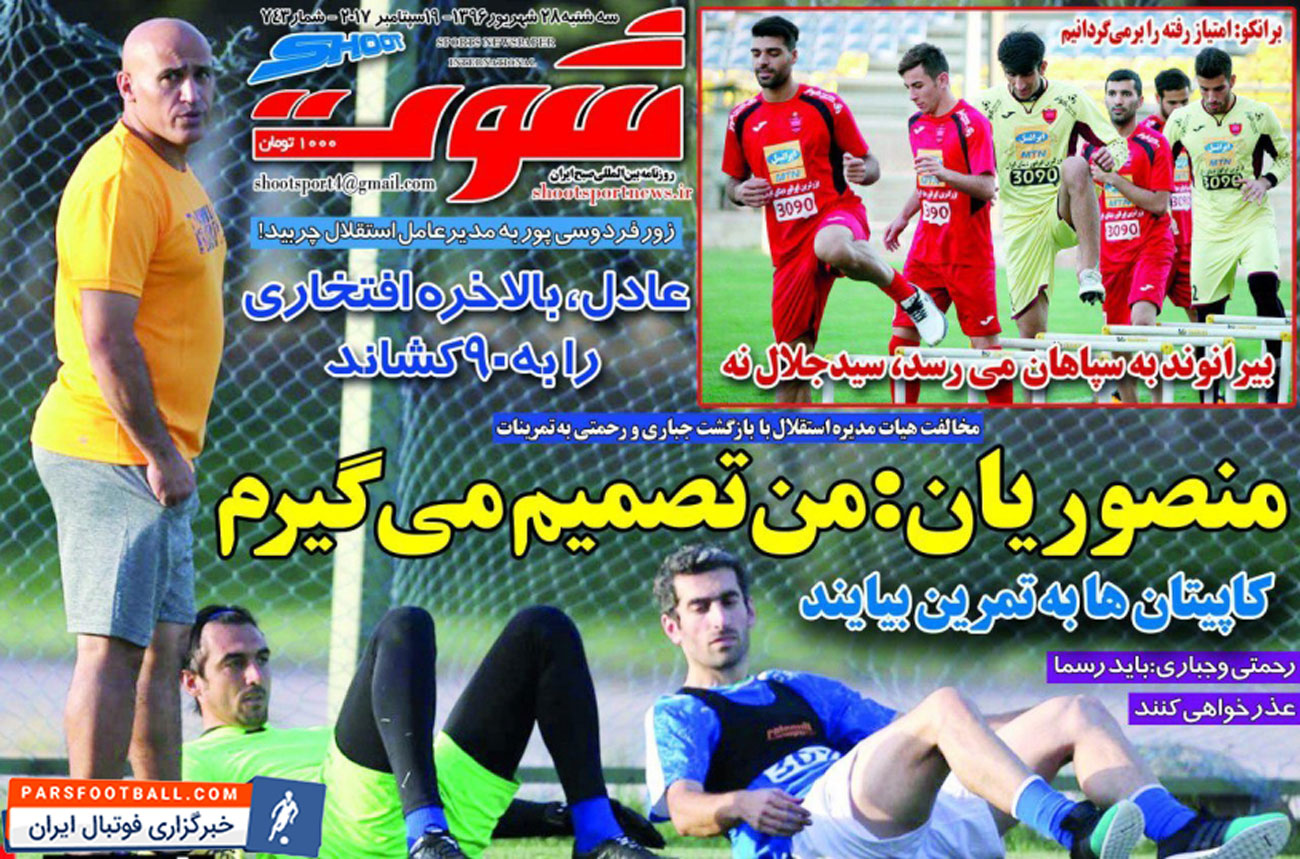 روزنامه شوت ، سهشنبه ۲۸ شهریور ؛ عادل افتخاری را به ۹۰ کشاند !