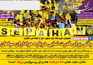روزنامه صدای سپاهان ، چهارشنبه ۲۹ شهریور ؛ ۱۰ درصد هم برای پرسپولیس زیاد است !