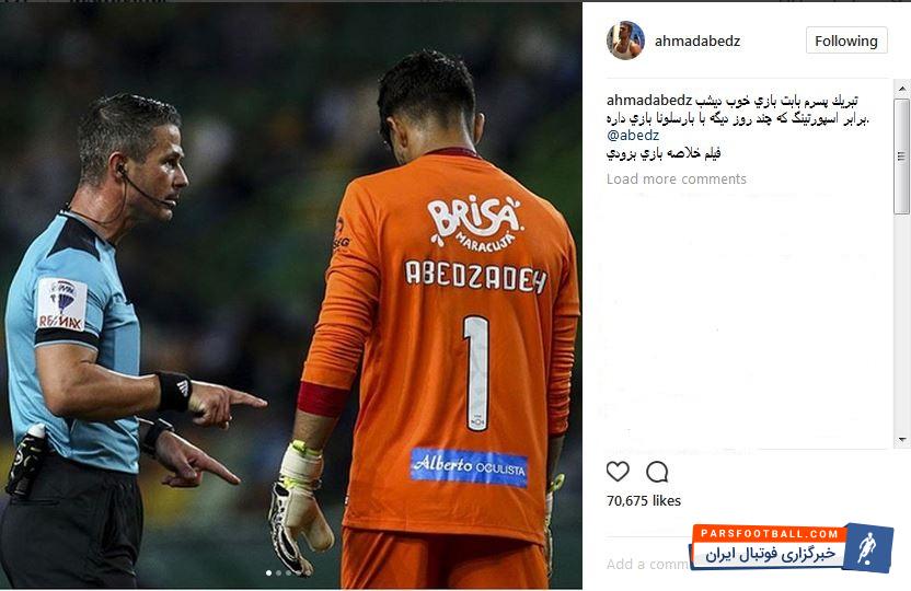 احمدرضا عابدزاده دروازه بان سابق تیم ملی فوتبال کشورمان با انتشار پستی در اینستاگرام از عملکرد خوب پسرش در مقابل تیم اسپورتینگ تمجید کرد.