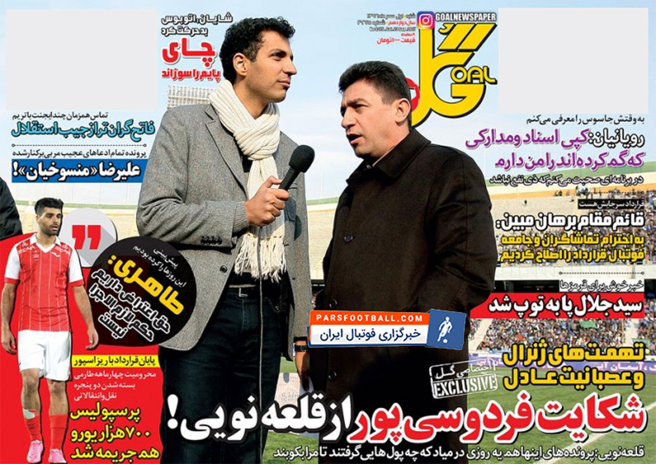 روزنامه گل ، شنبه ۱ مهر ؛ شکایت فردوسی پور از قلعه نویی !