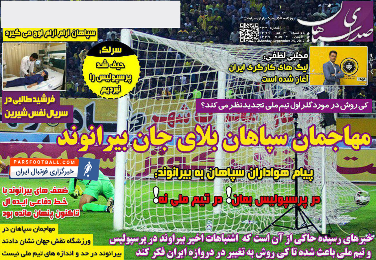 روزنامه صدای سپاهان ، دوشنبه ۳ مهر ؛ در پرسپولیس بمان ، در تیم ملی نه !