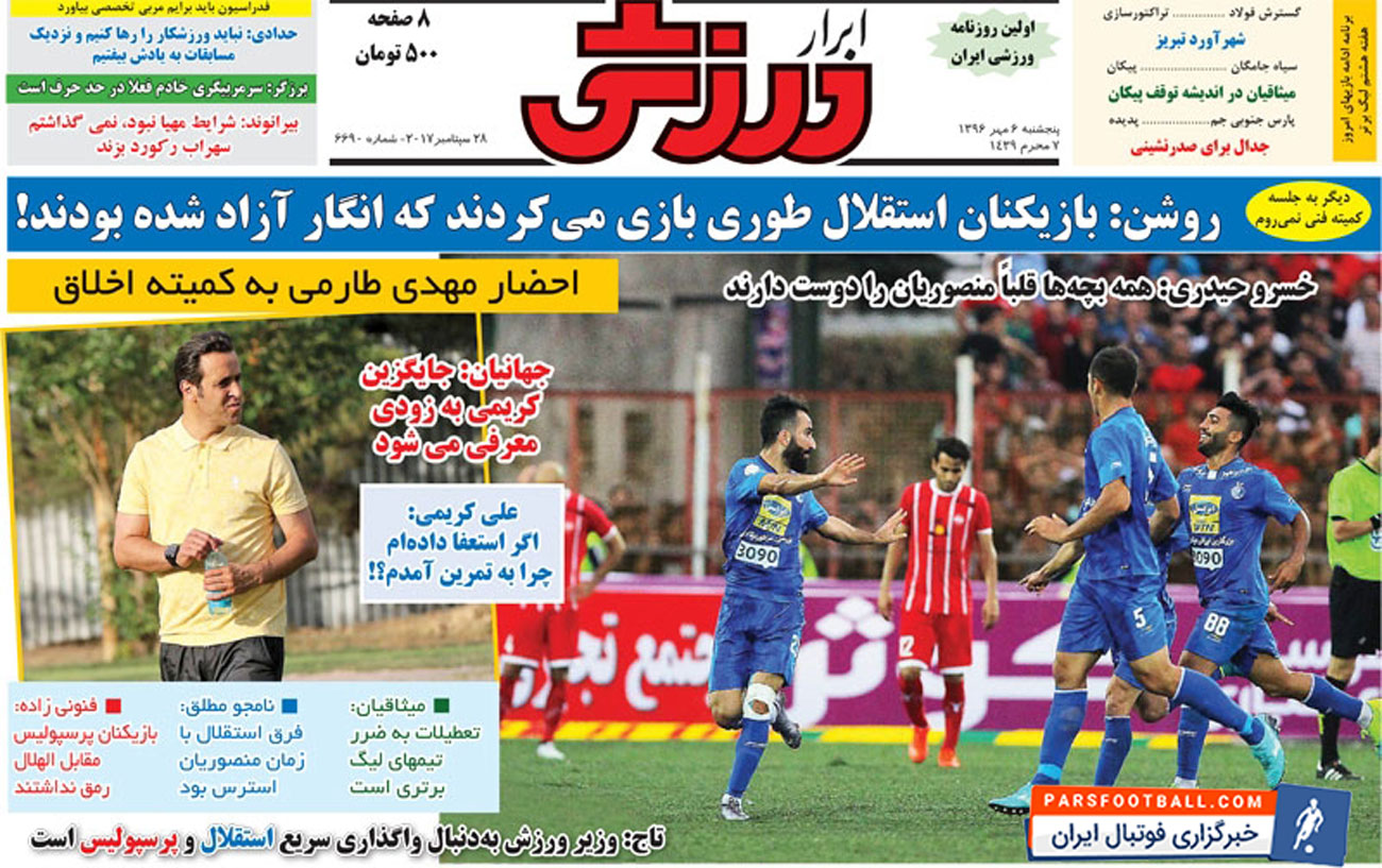 روزنامه ابرار ورزشی ، پنجشنبه ۶ مهر ؛ طارمی احضار شد !