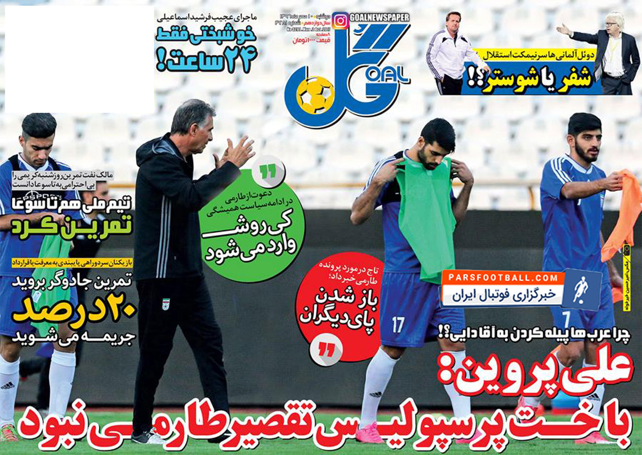 روزنامه گل ، دوشنبه ۱۰ مهر ؛ کی روش وارد می شود !
