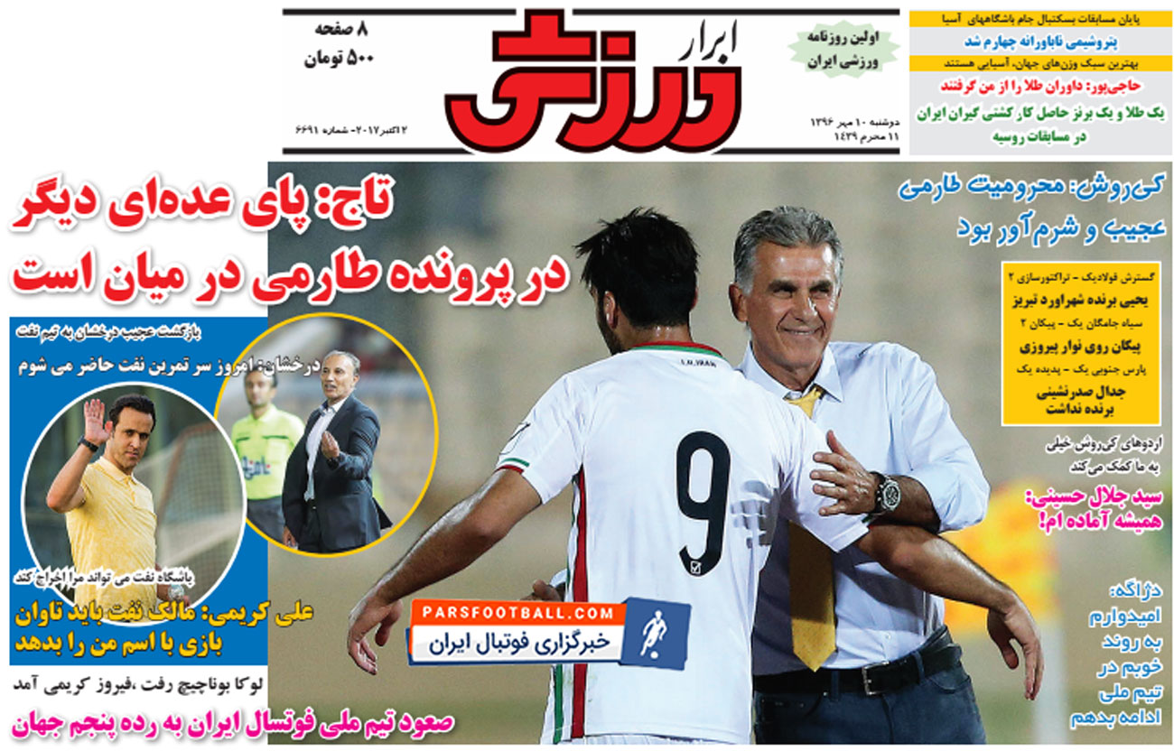 روزنامه ابرار ورزشی ، دوشنبه ۱۰ مهر ؛ محرومیت طارمی شرم آور بود !