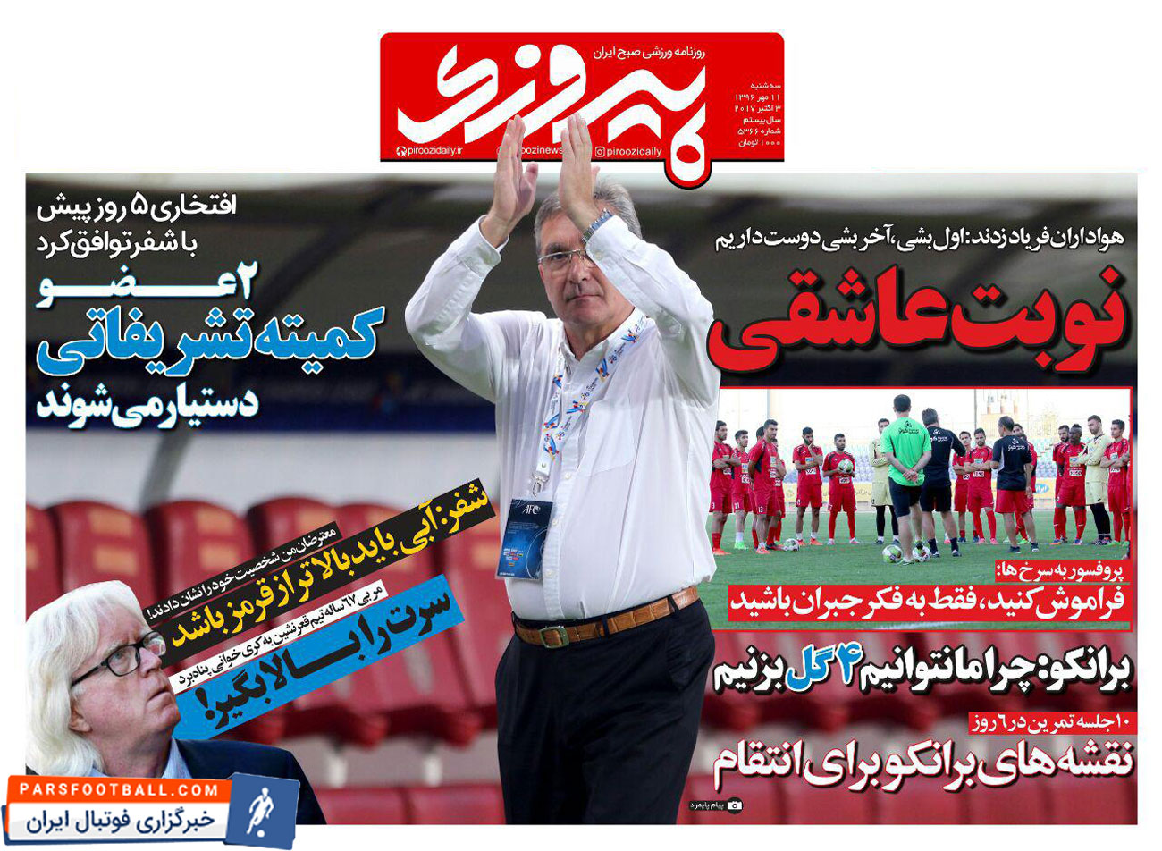 روزنامه پیروزی ، سه‌شنبه ۱۱ مهر ؛ نوبت عاشقی !
