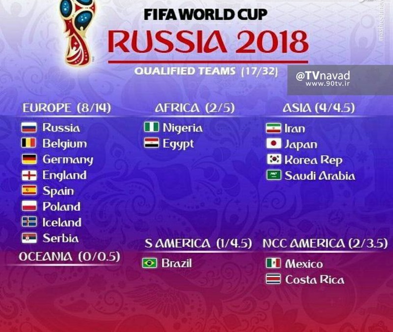 تاکنون ۱۷ تیم صعودشان به جام جهانی ۲۰۱۸ روسیه قطعی شده است.