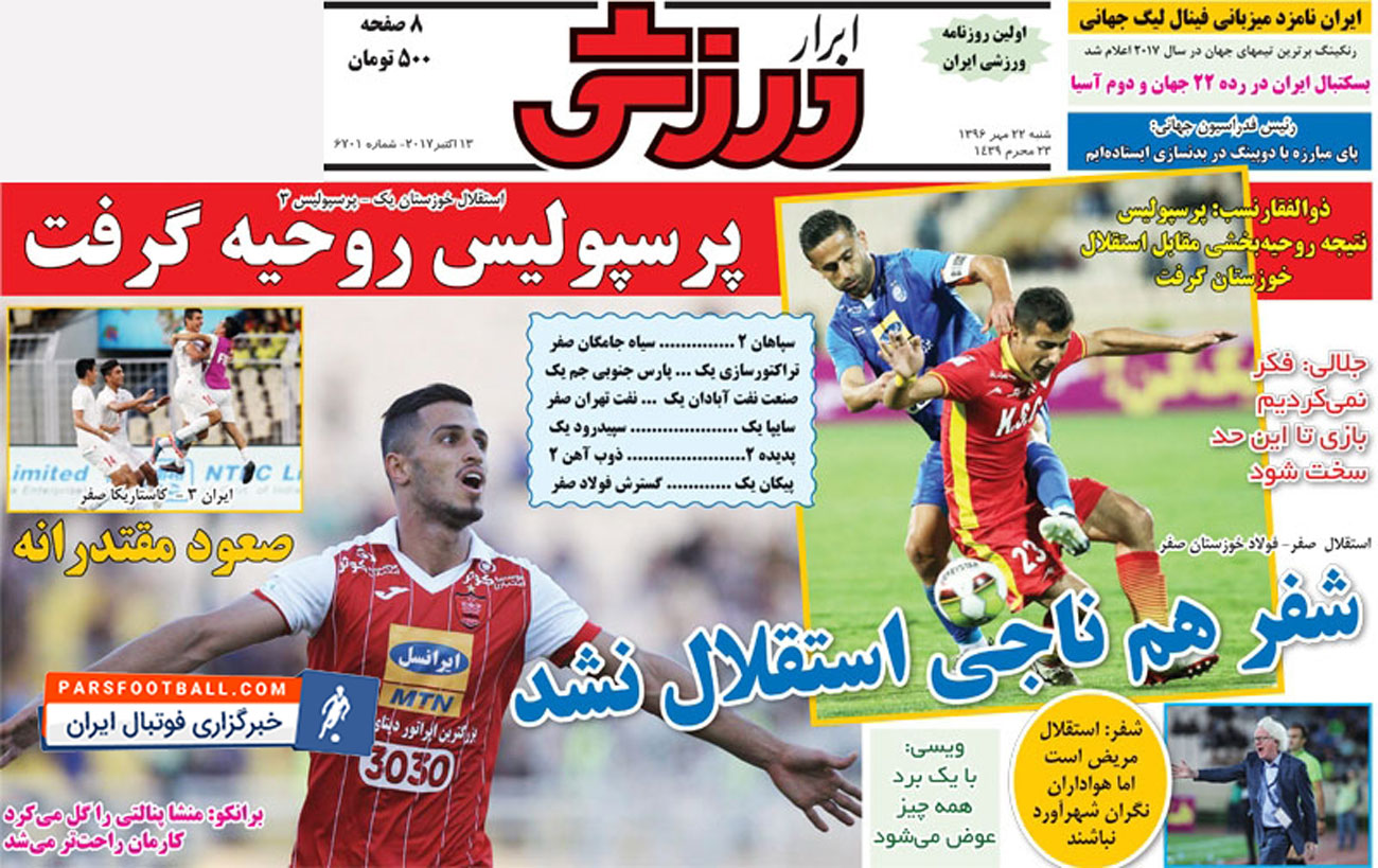 روزنامه ابرار ورزشی ، شنبه ۲۲ مهر ؛ پرسپولیس روحیه گرفت !