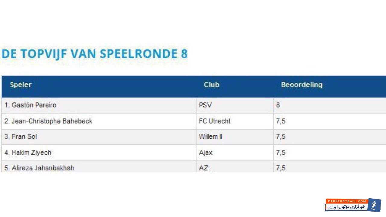 عکس ؛ لژیونر ایرانی در بین بازیکنان برتر اردیویسه
