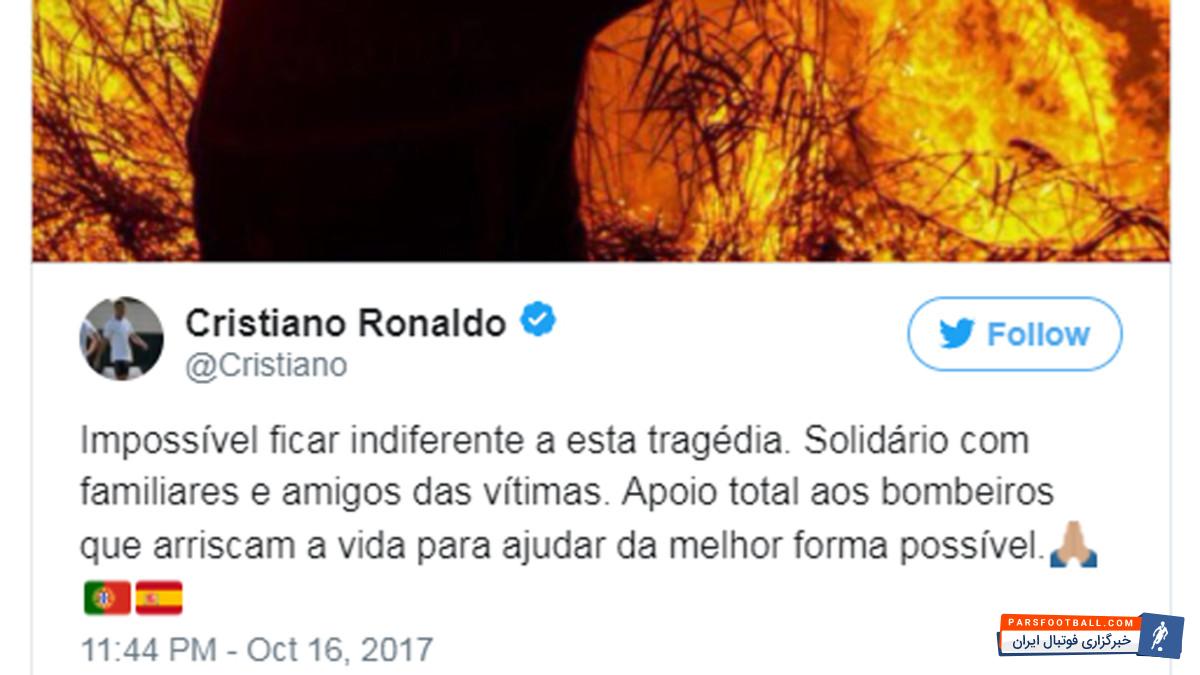 یک آتش سوزی شدید در حال حاضر در پرتغال رخ داده که جان تعدادی از هموطنان رونالدو را گرفته و این بازیکن نیز با قرار دادن تصویری از این حادثه با مردم کشورش ابراز همدردی کرده اشت.