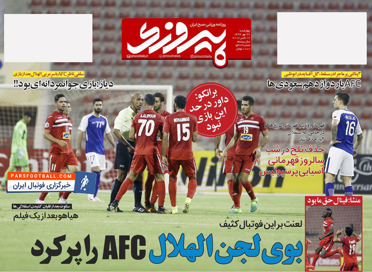 روزنامه پیروزی ، چهارشنبه ۲۶ مهر ؛ لعنت بر این فوتبال کثیف !