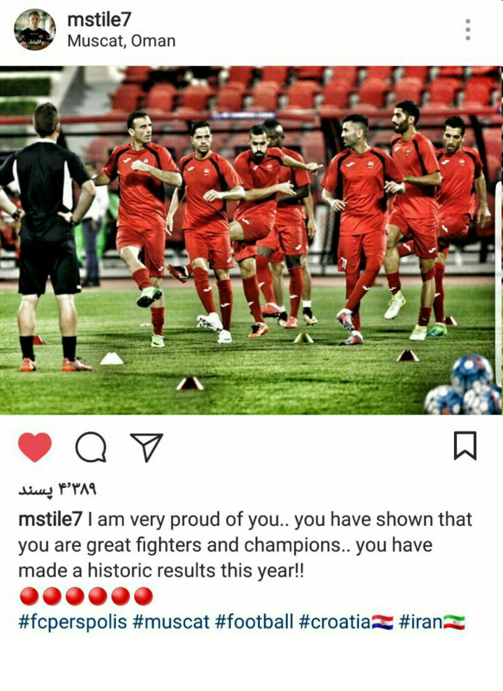 مارکو استیلینوویچ ، مربی بدنساز تیم فوتبال پرسپولیس، که به خاطر تمرینات سخت بدنسازی به قاتل بازیکنان مشهور شده است، پیامی را در اینستاگرام خود منتشر کرد.